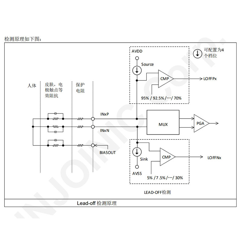 IPA1299在封装与功能上兼容TI ADS1299的48引脚QFN封装,覆盖ADS1298的主要特性,支持250SPS至16kSPS采样率,集成可编程增益放大器(PGA)、内部基准与振荡器。设备厂商可在不修改原有电路设计的基础上进行替换,有助于缩短研发周期。