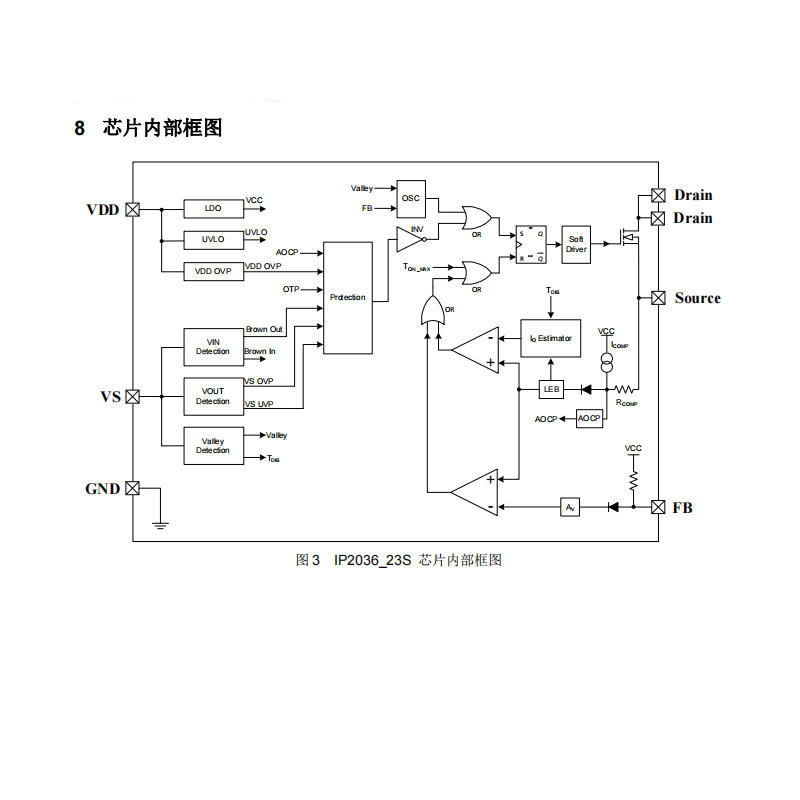 总体来看,英集芯IP2036_23S反激控制器在能效控制、频率适应、噪声抑制、集成度、保护机制等方面进行了较为全面的设计,具备多种工作模式和参数调节功能,适用于多种电源应用场景。