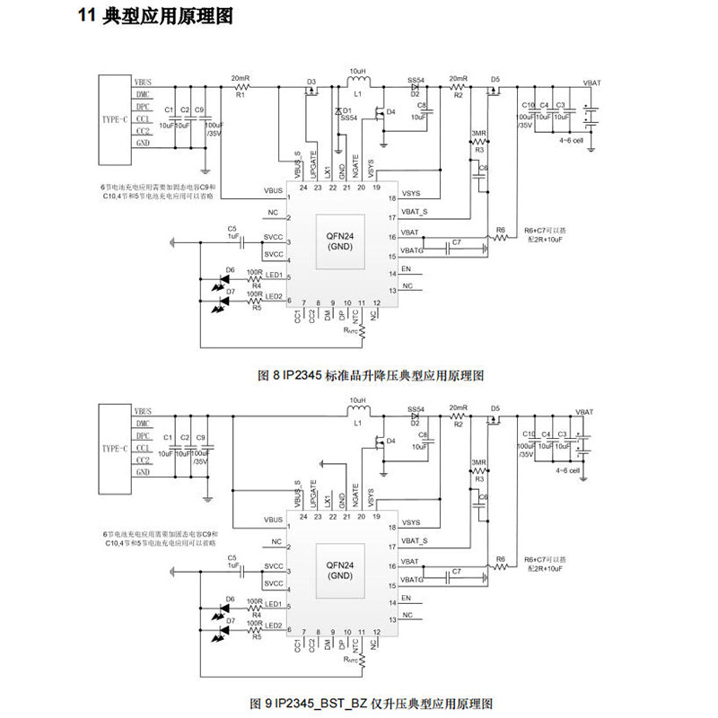 英集芯IP2345 支持低功耗模式,待机状态下电流可降至 10µA 以内,有助于减少待机功耗,延长设备续航。芯片采用 QFN24 封装,体积较小,便于电路板布局,有利于设备的小型化设计。
