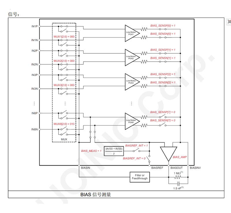 英集芯IPA1299是一款8通道低噪声24位同步采样Δ-Σ模数转换器(ADC)芯片,专为颅外脑电图(EEG)和心电图(ECG)设计。其核心优势体现在三大技术突破: