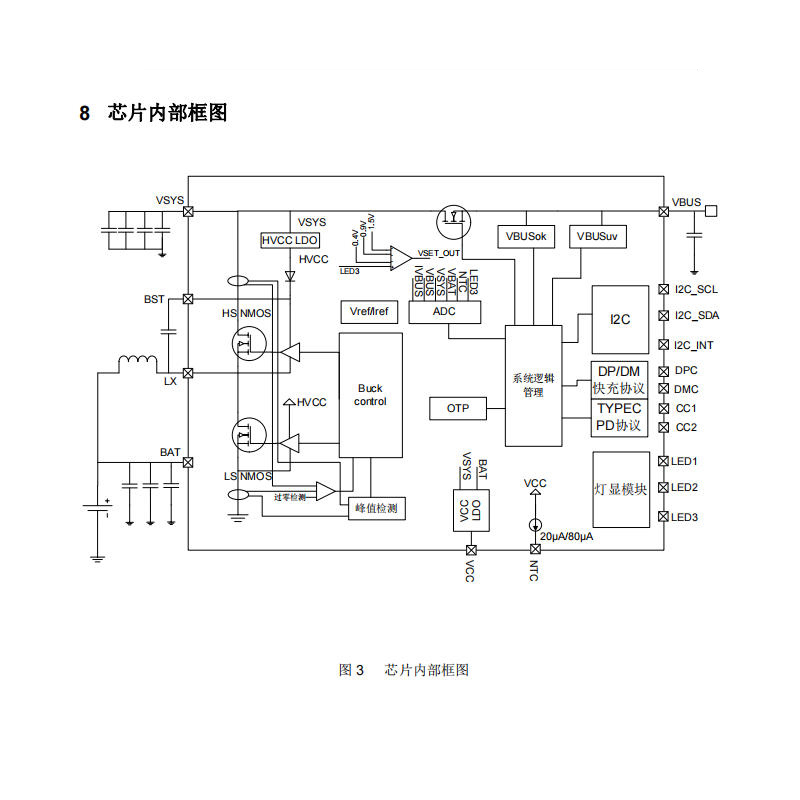 在快充技术方面,IP2317集成了USB C DRP协议、PD2.0/PD3.0输入快充协议,并支持AFC/FCP输入快充协议,能够兼容市面上多种常见的快充适配器。在与适配器连接时,可进行协议识别并申请5V-12V电压,从而有助于缩短充电时间。例如,在使用支持PD3.0协议的适配器时,IP2317可将充电电压提升至9V或12V,有助于提高充电效率。